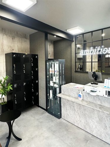 ambitiousは、モノトーンを基調としたシンプルかつ洗練された空間が特徴です。